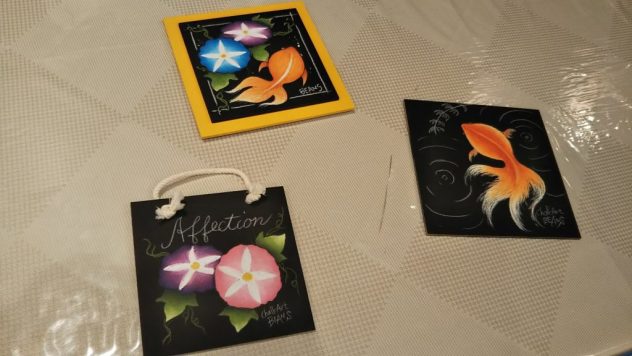 皆様 それぞれが とても素敵なチョークアートを完成させていました。最後に全員の作品を並べて記念撮影して終了になりました。とても楽しかったそうです。